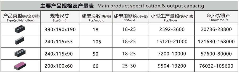 用途:生產(chǎn)各種外墻砌塊、內(nèi)墻砌塊、花墻砌塊、樓板塊、護(hù)堤塊、連鎖塊、路緣石等砌塊。增加面料裝置可生產(chǎn)彩色路面磚。