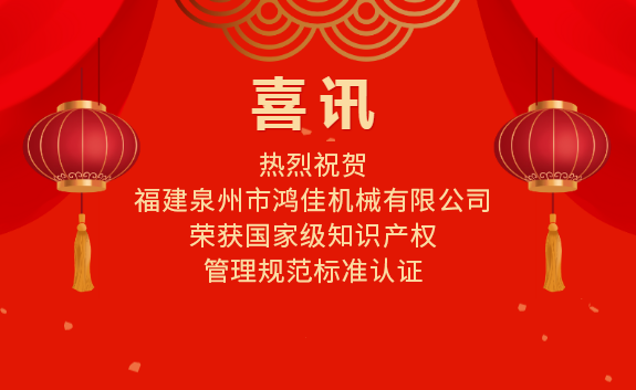 喜訊|熱烈祝賀福建泉州市鴻佳機械有限公司榮獲國家級知識產(chǎn)權管理規(guī)范標準認證